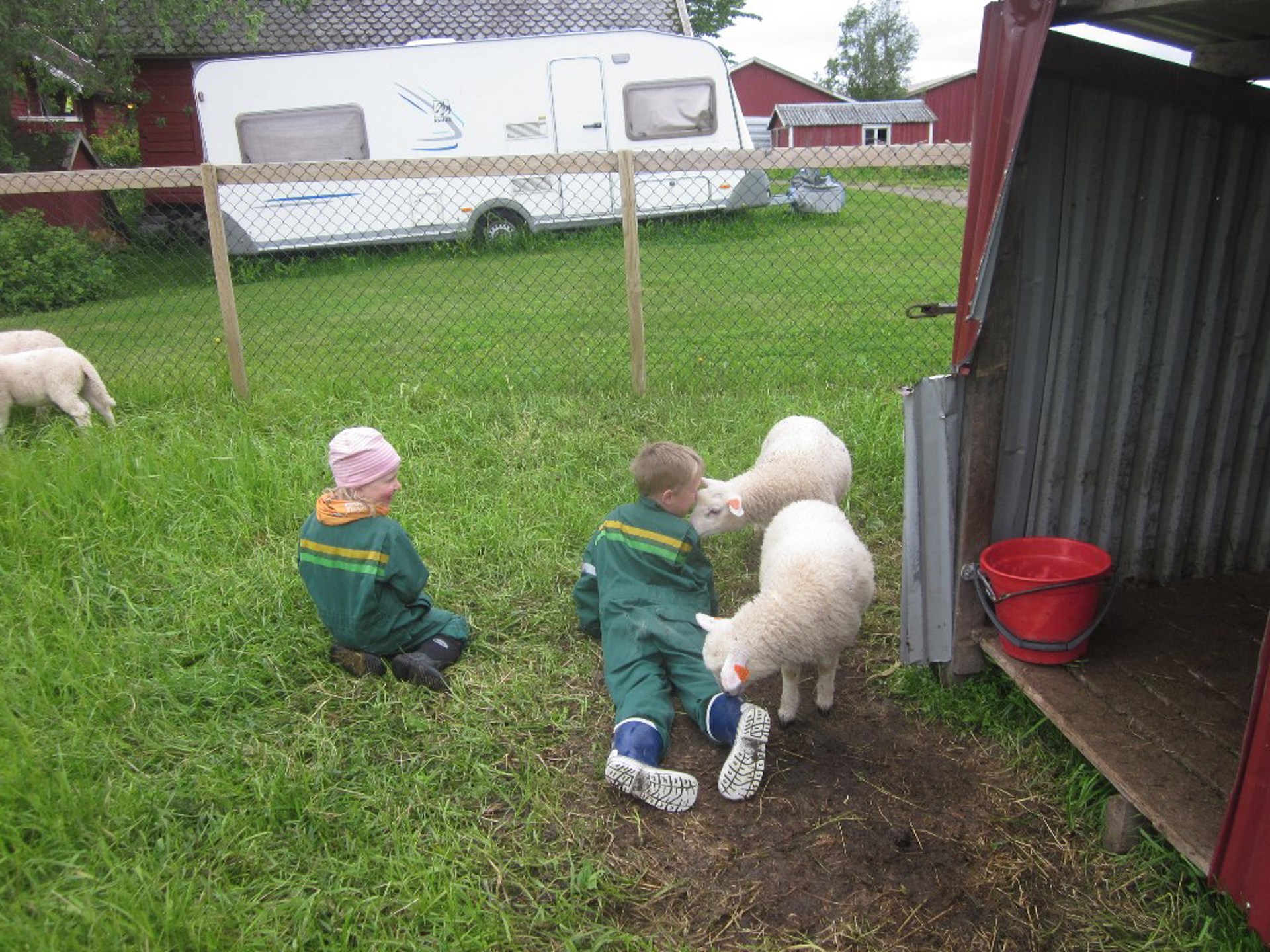 SMÅ OG STORE ØNSKES EN GOD SOMMER FRA ALLE OSS I BARNEHAGEN! Bildet er fra den daglige fjøsrunden hvor alle dyrene våre for mat og stell. Flaskelammene er blitt veldig kosete og nyter stunden sammen med barnehagebarna. Oppstart for nytt barnehageår er mandag 17.august.
